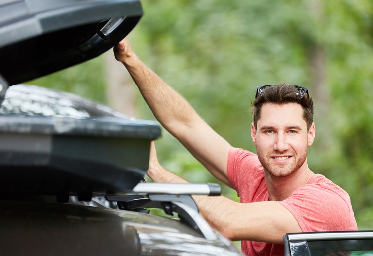 Achten Sie beim Packen des Dachträgers immer darauf, dass alles sicher verladen ist. Vermeiden Sie es, extrem schwere Gegenstände darauf zu montieren. Verwenden Sie eine Leiter, die höher ist als Ihr Auto, oder kaufen Sie ein Zubehörteil für Auto, das Sie außen am Fahrzeug befestigen können und das Ihnen beim Aufsteigen und Beladen des Trägers hilft. Lassen Sie sich auch hier beim Ein- und Auspacken des Dachträgers helfen.
